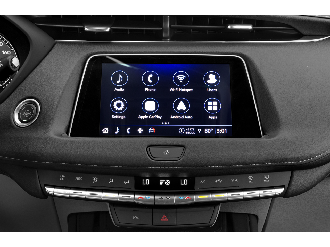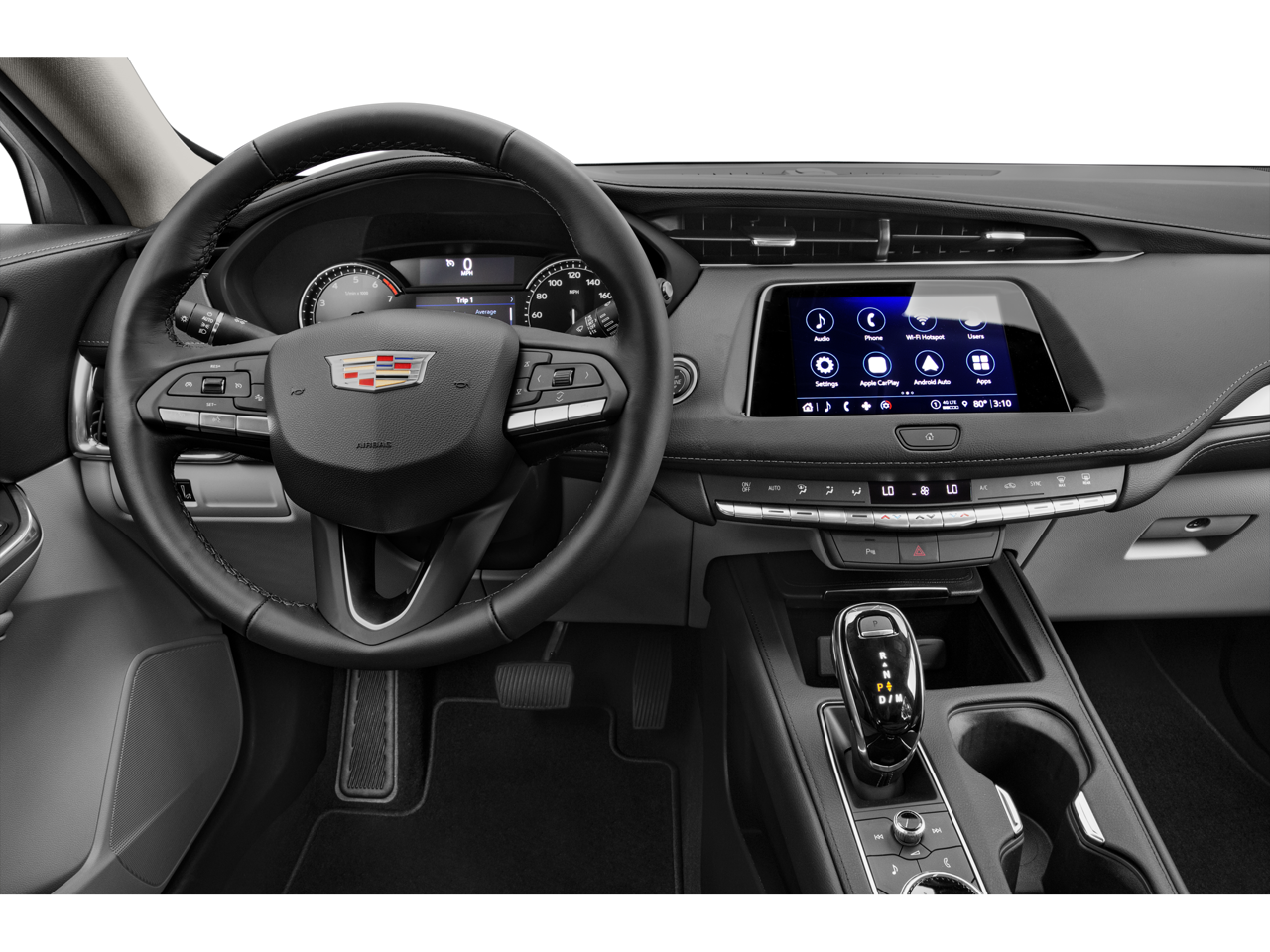 Technology: Cadillac User Experience with embedded navigation, wireless Apple CarPlay and Android Auto, Bose 13-speaker surround sound system, HD rear vision camera, and Wi-Fi hotspot capability.